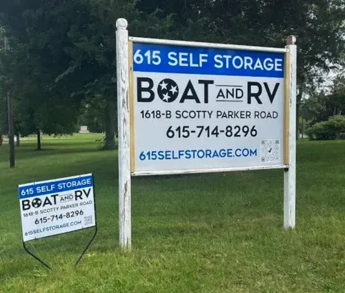 615 Self Storage Boat and RV continues to provide boat and RV storage to the Sumner County, Tennessee area. We specialize in having easy access for all of your trailers and RV's, no matter their size, and have plenty of turning radius so you may easily back in to your spaces. We offer covered units with lockable doors as well as uncovered, outside parking. Outdoor parking requires Tennessee sales tax, and is built in to the price, and not on top of the advertised price.